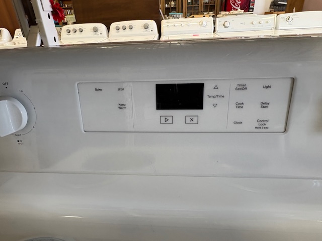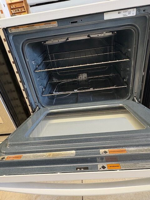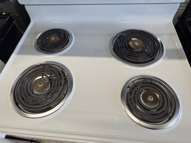 Reconditioned Electric Range, 4.8 cu. ft. Capacity, 30″ Exterior Width, 4 Coil Burners (Safety limiter elements), Storage Drawer, Manual Clean, White colour