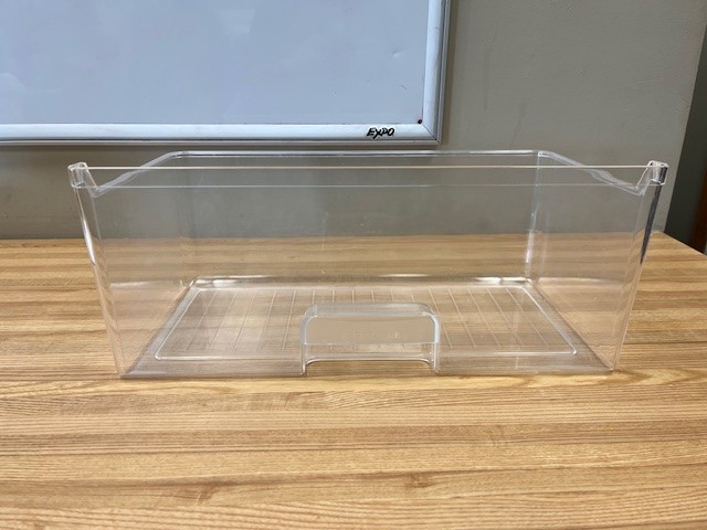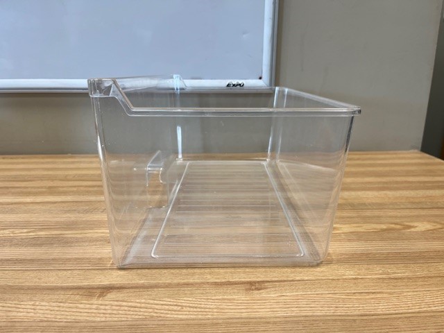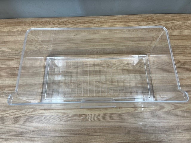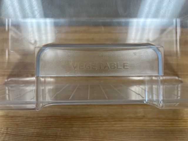 Description: This crisper drawer is clear in colour. The crisper drawer stores fruits and vegetables. This Crisper Drawer is found within a 24″ Fridge