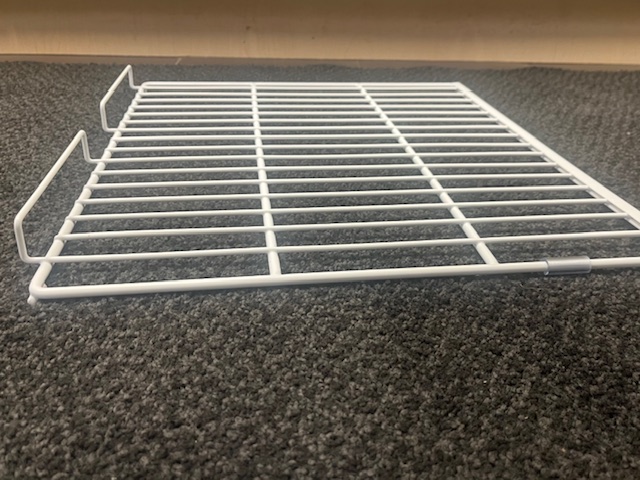 Description: White wire shelf found in the Fresh Food Section of a 24″ Fridge. Shelf placement is adjustable in the Fridge.