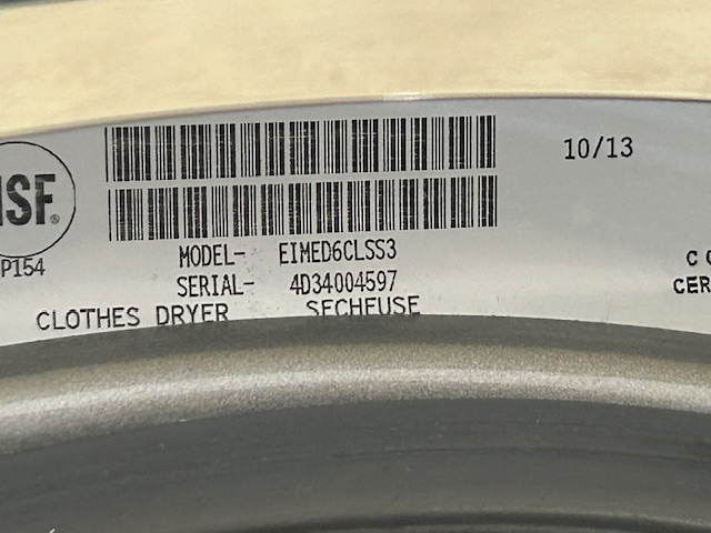Reconditioned Electric Steam Dryer, 27 inch Width, 8.0 cu. ft. Capacity, Steam Clean, 5 Temperature Settings, Stackable, Steel Drum