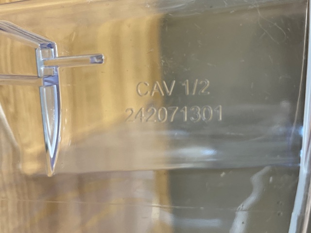 This door bin is clear in colour. This bin is found on the left door of a 36″ French door fridge.