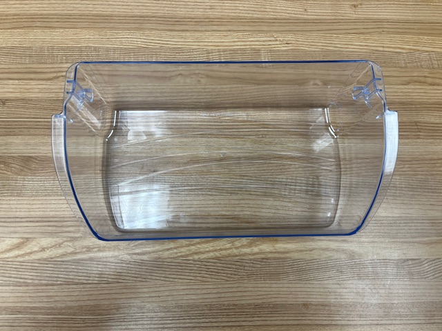 This plastic bin is clear in color (Some of the bins will be light, others will have a darker tint to them). The door bin attaches to the inside of the refrigerator door and typically holds jars and bottles.