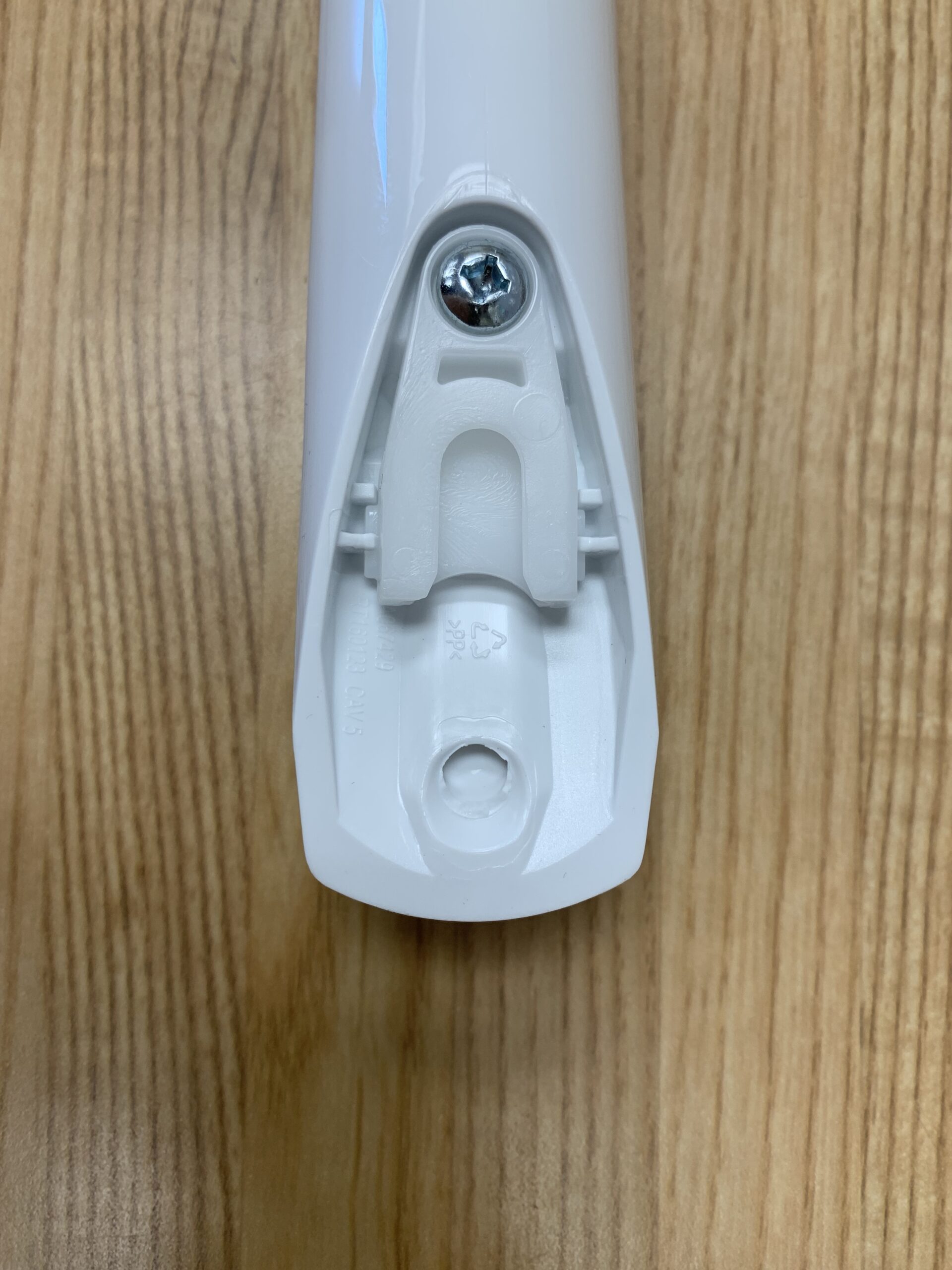 This is a Plastic Handle, White in colour. Does not come with the handle screws. The handle will work for both the Fridge and Freezer.