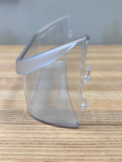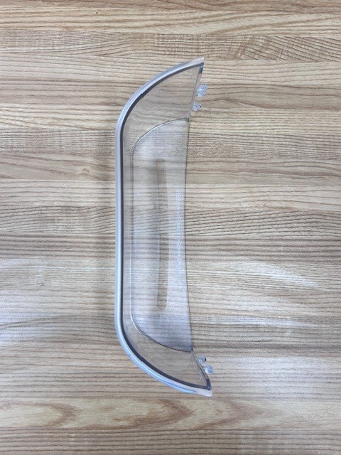 This door shelf is clear in colour. Found on the Freezer side door of a side by side refrigerator.