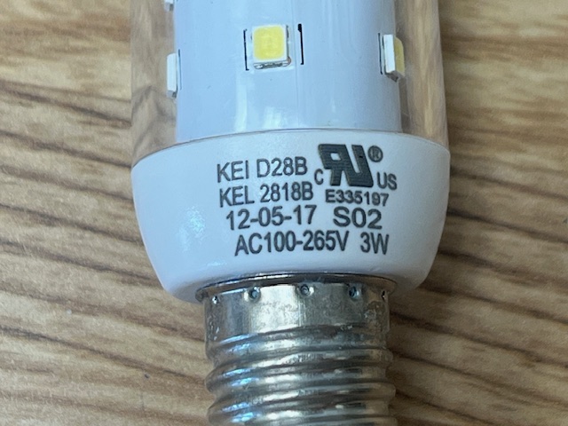 This LED light bulb is clear in colour. This light bulb illuminates the inside of the refrigerator.