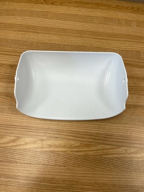 The dairy door is White in colour. The dairy door covers the dairy products in the dairy bin section of the fridge door. Also known as the butter door. This Dairy door is found in a 30″ wide fridge ranging from 18-20 cu.ft.. Also see 240337712 which is the same Dairy door just Clear.