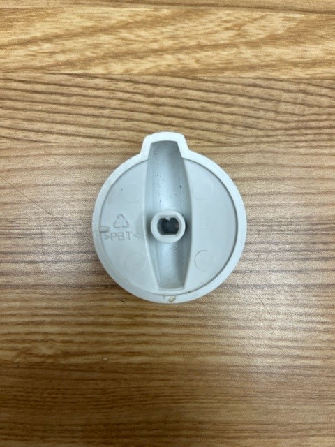 Description: This control knob is white in colour with grey details. The knob turns the burner control that powers the heat of the surface burner on your range.