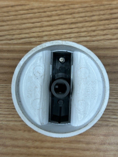 Description: This control knob is white in colour with grey details. The knob turns the burner control that powers the heat of the surface burner on your range.