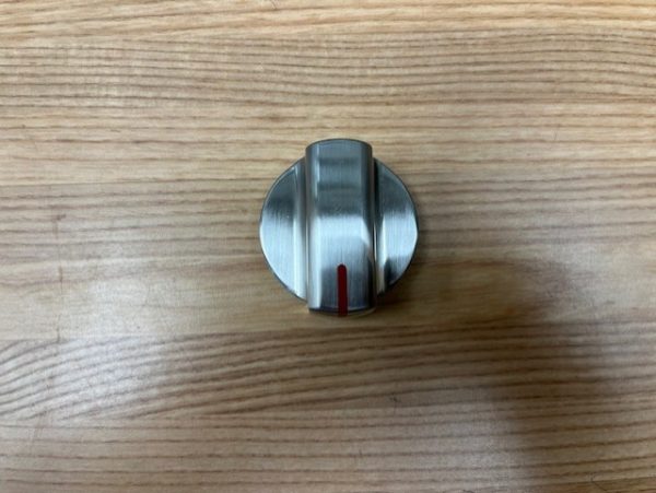 Description: This control knob is Stainless steel in colour with red details. The knob turns the burner control that powers the heat of the surface burner on your range.