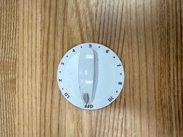 This control knob is plastic and white for a single element control. This part lets you control the heat of the surface burner on the range.