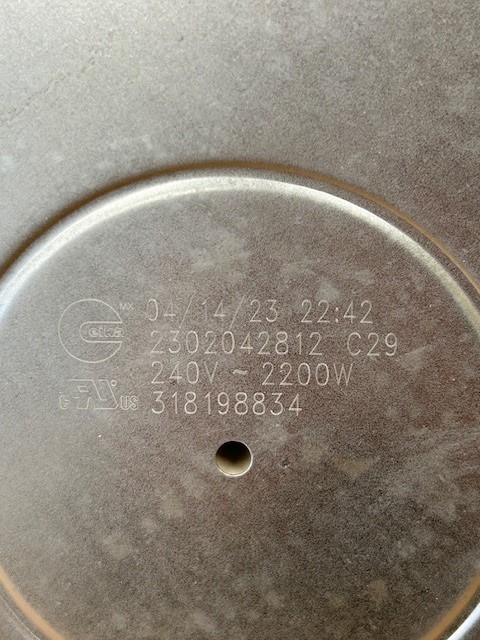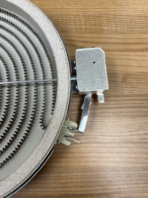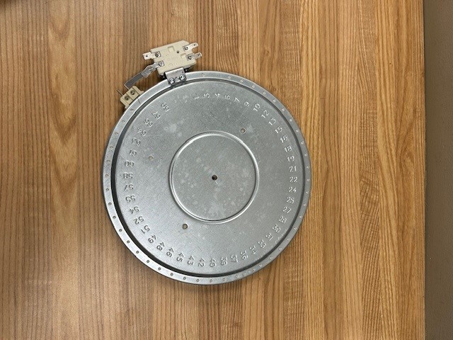 Description: This Radiant element is found under the Glass/Ceramic top stoves. This element would be for a 8″ single element. 240V, 2200W