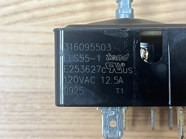 Description: Infinite switch to control the warming element. Also known as a Regulator, Stove control Switch.
