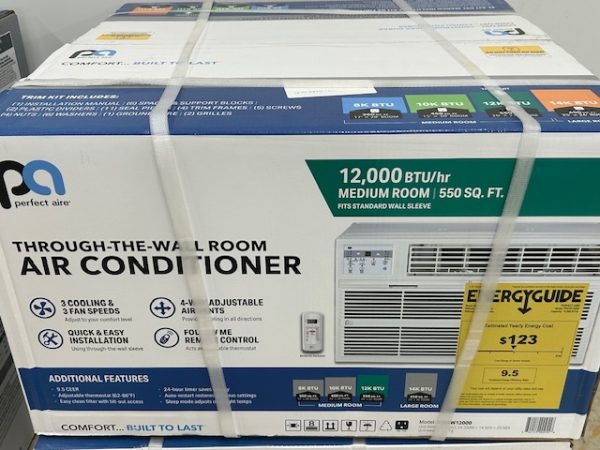 NEW Thru the Wall Air Conditioner, 12,000 BTU, Electronic Controls with Remote, 550 Sq. Ft. Cooling Area, 3 cooling & 3 fan speeds, Easy clean slide out filter, Mounting kit included, 4-way adjustable air vents