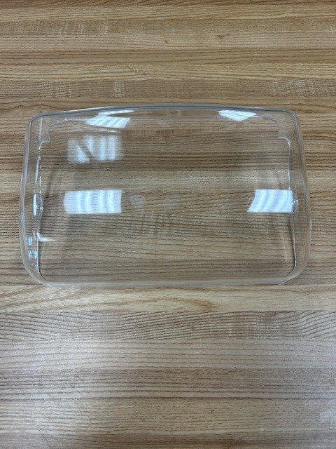 Description: This dairy door is clear in colour. The dairy door shields the dairy products in the dairy bin.