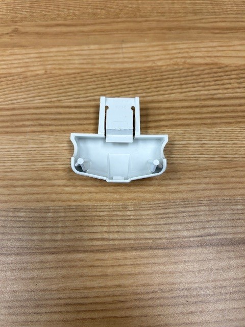 Door Shelf End Cap. This end cap is white in colour. These end caps hold the bottle bar in place on the Fridge Door. 2 required for each Bar, same end cap for left and right side.