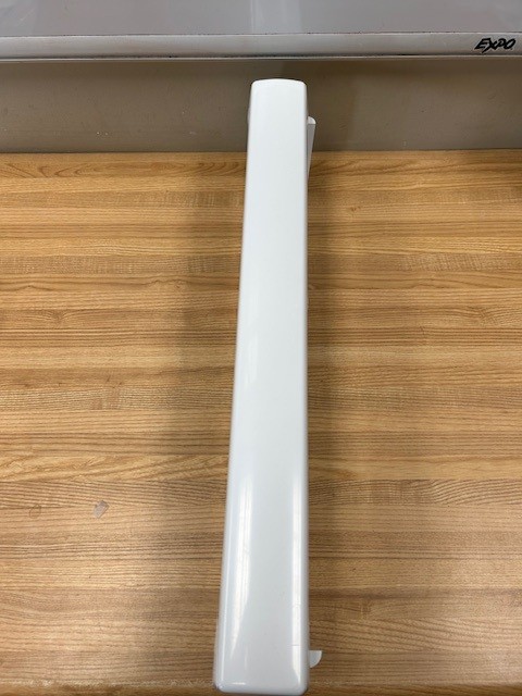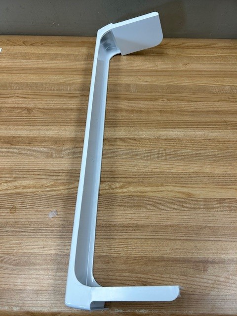 Description: This door bar is white in colour. The door bar snaps into place on the freezer door to hold items on the door shelf.