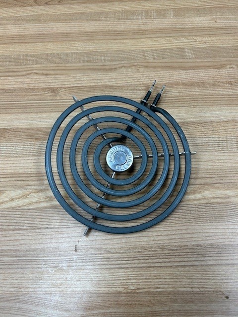 Description: This element features pigtail, looped ends. This element is 8″ in diameter. This element coil has 5 turns. This surface element has a chrome centre medallion. The coil surface element supplies the heat to a cooking area on top of the range.