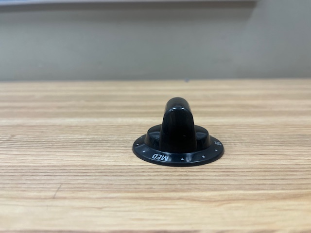 Description: This control knob is black in colour, and lists temperature settings on the knob. The knob turns the burner control that powers the heat of the warming element on your range.
