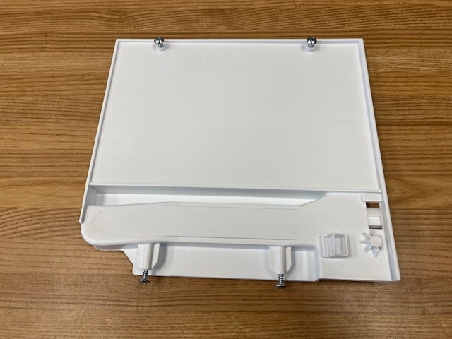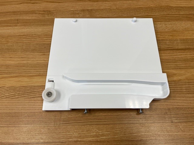 This is the Left side Slide rail that attaches to the Crisper Frame top and Bottom. Part comes with the Roller Wheel and the 4 screws that are used to attach the rail to the bottom frame. The Frame when completed with all parts holds the Crisper drawers in place.