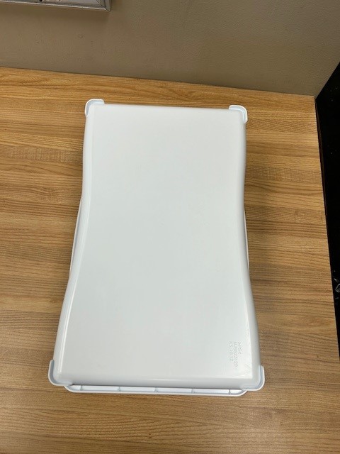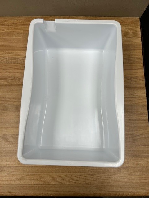 Ice bin found in the Pull out Drawer in the Freezer section of a 30″ wide French Door Fridge. The ice maker in the Freezer section of the Fridge would make Ice and dump it into this bin . Also known as an Ice Bucket or Ice Container.