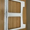 Description: This is the Bottom Piece of the Crisper Drawer Frame, that holds the Crispers in place in the Fridge. The Frame when completed with all parts holds the Crisper drawer in place. Color is White, Made of Plastic.
