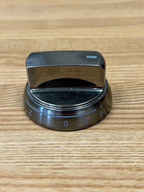 This control knob is Black Stainless in colour and is made of Metal. The knob turns the burner control that powers the heat of the Dual element on your range. These Knobs are found on a Black Stainless Steel Slide in range.