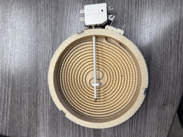 This element is 6″ in diameter. The radiant surface element supplies the heat to a cooking area on top of the range.