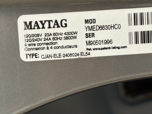 Reconditioned Electric Dryer, 27″ Width, 7.4 cu. ft. Dryer Capacity, 12 Dry Cycles, Steam Clean, 4 Temperature Settings, Vented, Stackable, Metallic Slate colour