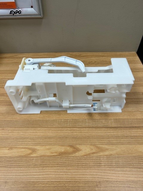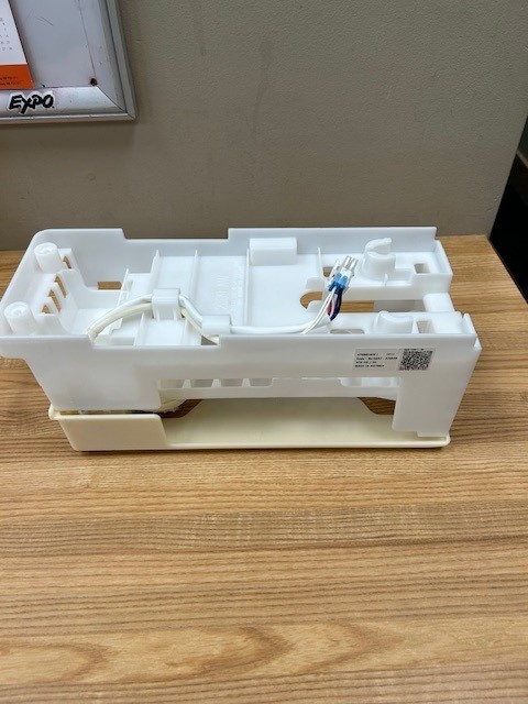 The ice maker receives water from the water inlet valve and then holds the water in the ice mold until the water freezes solid. It then automatically ejects the ice and refills to continue the process until the ice storage bucket is full.