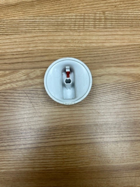 This control knob is white in colour with Red details. The knob turns the burner control that powers the heat of the surface burner on your range.