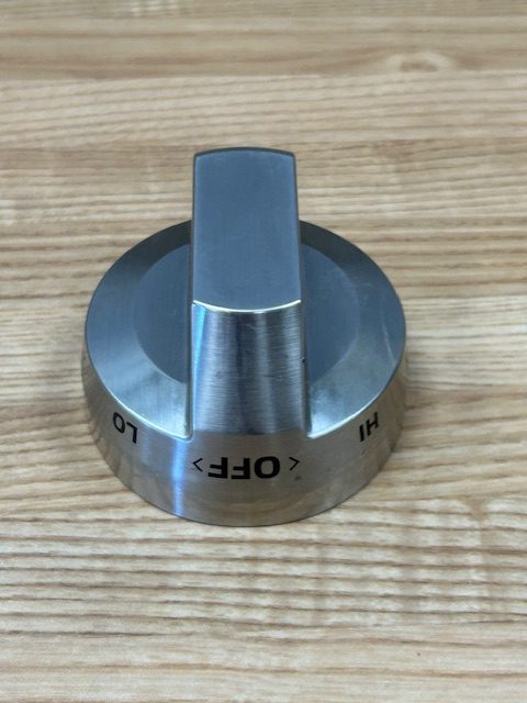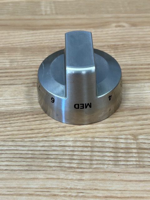 This control knob is made of metal and is Stainless Steel in color. The knob turns the burner control that powers the heat of the surface burner on your range. This burner knob is for a single element.