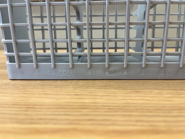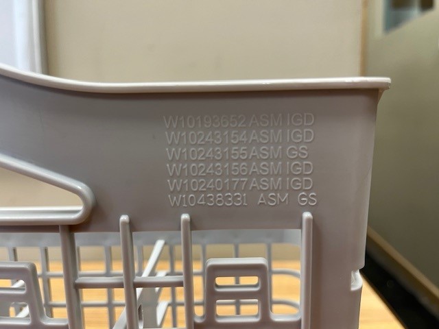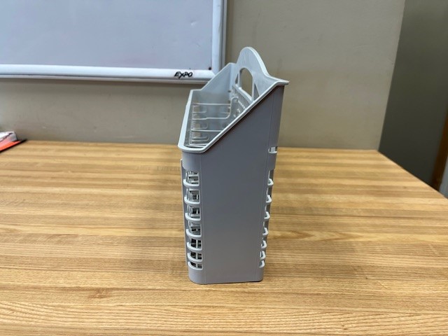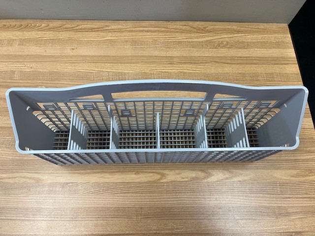 Light Grey in color. Dimensions (Approx.)- Width: 19 1/4″ depth: 3 1/2″ Height: 9″ . This part is also known as a silverware basket. Sits in the Lower Dishrack and holds utensils for washing.