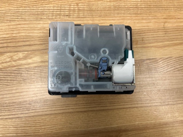 Soap Dispenser located on the Dishwasher door. Dispenses the soap during the correct cycles. Also called a Detergent Dispenser or Detergent Module.