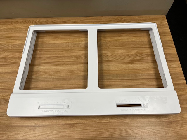 This is the frame that is above the Crisper Drawer in an All-Fridge Refrigerator. The Cover will support the Crisper Drawers. The Frame is Plastic and is white in color. Contains 2 humidity controls.