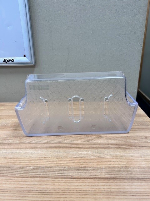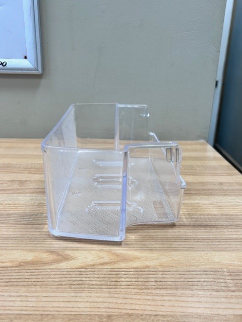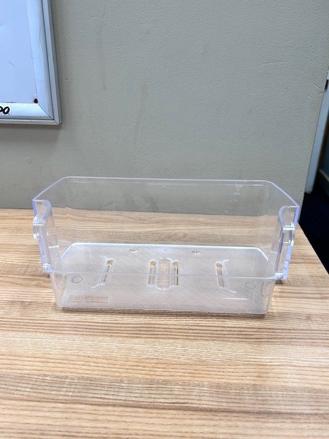 This part is Clear Door Bin. The door bin attaches to the inside of the refrigerator door and typically holds jars and bottles.