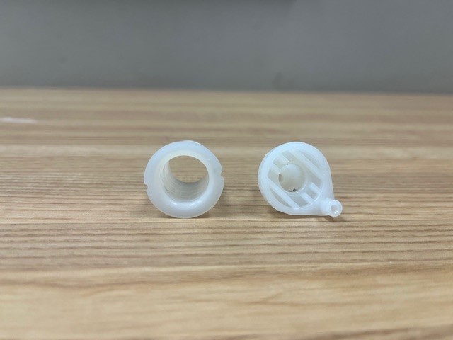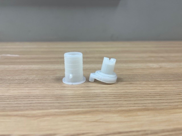 The door cam helps the door open and close smoothly. The thimble attaches inside the refrigerator door panel and provides a smooth surface for the door hinge pin to pivot in.