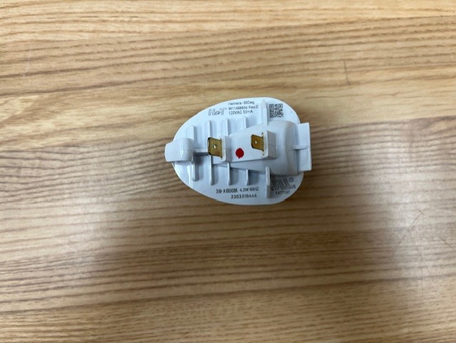 The light module assembly attaches inside the cabinet and illuminates the inside of the refrigerator.