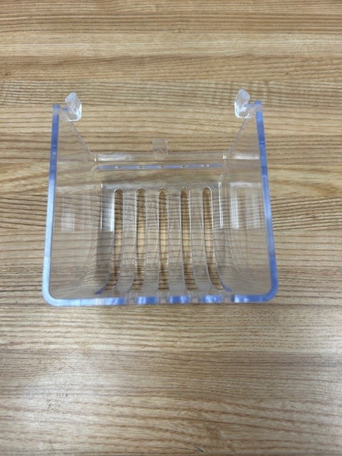 Description: The refrigerator light lens cover is a plastic component that diffuses and protects the light bulb inside the refrigerator.