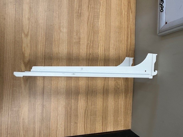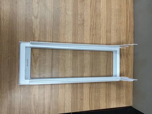 Narrow Glass Adjustable Cantilever Shelf. The Shelf has a Silver trim. This divider is normally found in a 36″ wide fridge.