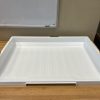Description: White large pantry Drawer found at the bottom of the fridge section of a French door fridge. Also known as Large Deli Drawer or Glide N’ Serve Drawer.