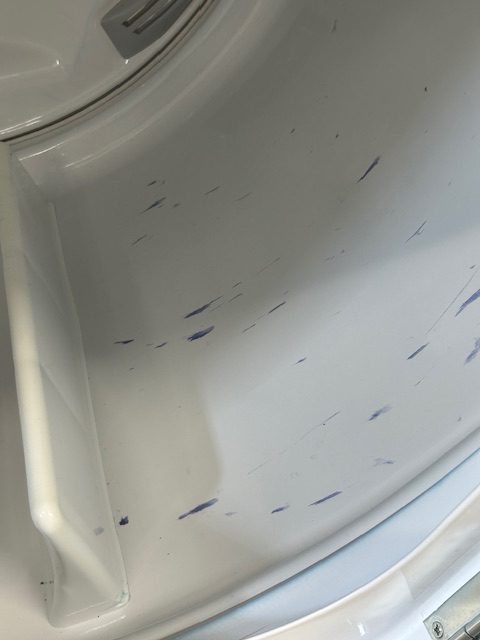 **Note: Blue Scruff marks inside the Dryer on Drum – cosmetic issue only, does not affect the function of the dryer – see picture**