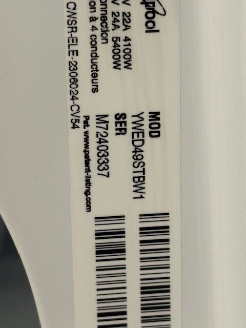 Reconditioned Electric Dryer, 29″ Width, 7 cu. ft. Capacity, Vented, 13 Dry Cycles, Steam Clean, 4 Temperature Settings, White colour