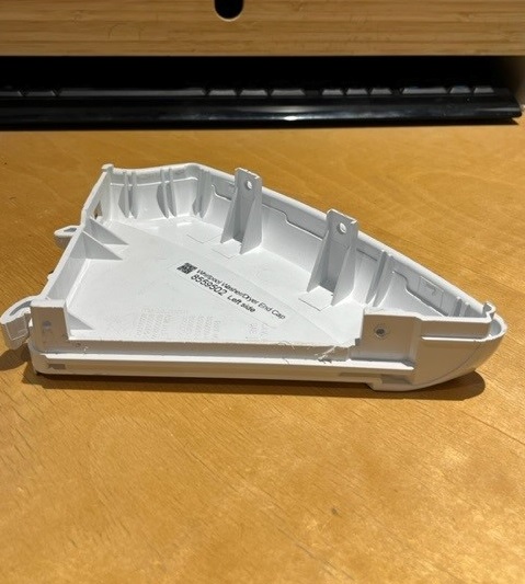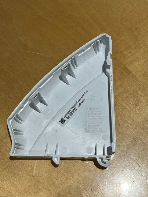 White Plastic End cap from on the Left Hand side of the Washer or Dryer Console.
