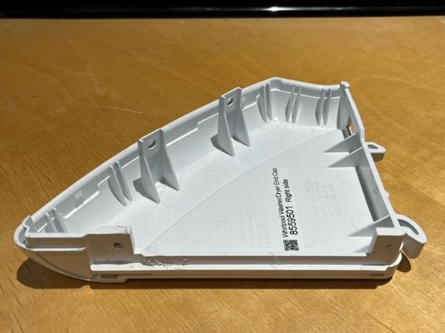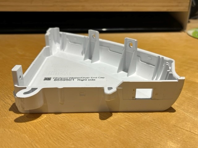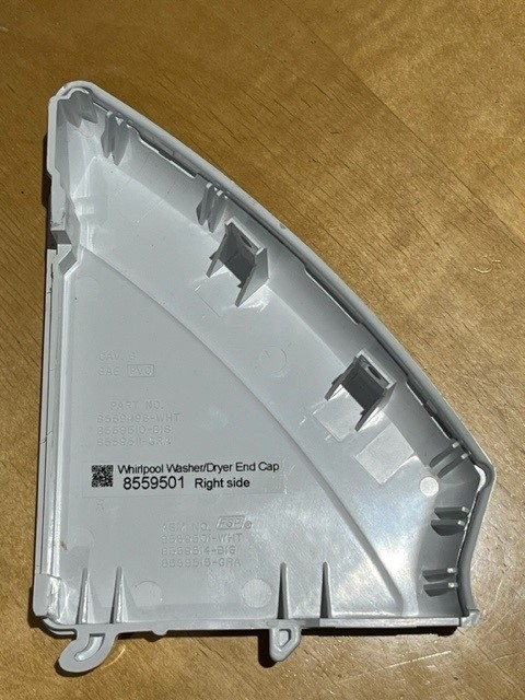 White Plastic End cap from on the Right Hand side of the Washer or Dryer Console.