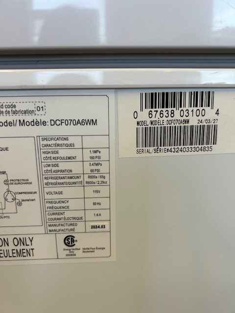 Reconditioned Chest Freezer, 32 1/2 inch Width, ENERGY STAR Certified, 7.0 cu. ft. Capacity, Manual Freezer White in Colour Make: Danby Width: 32 1/2″ Depth:…